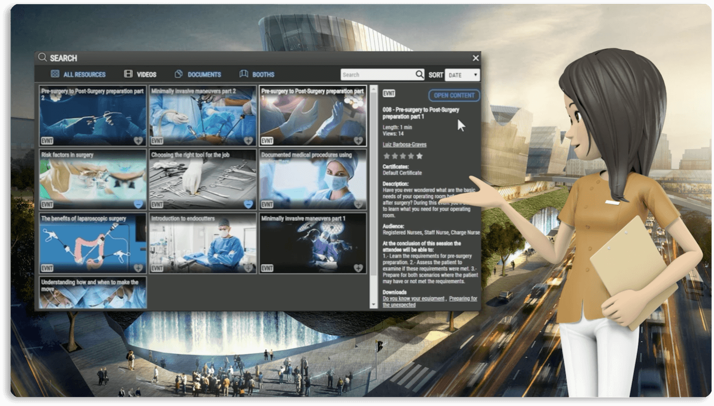 Our innovative Corporate Video Center is a customer favorite! It can easily integrate with our advanced portals, serious games for training, and virtual worlds for business. Videos have search and tagging capability, along with categories such as on-demand, favorites, and a rating system. We have experience in infusing thousands of organizational and external videos in our Corporate Video Center and even retrieve by our Virtual Concierge (smart avatar). Our video center increases access to best practices, corporate announcements, training courses, and much more.
